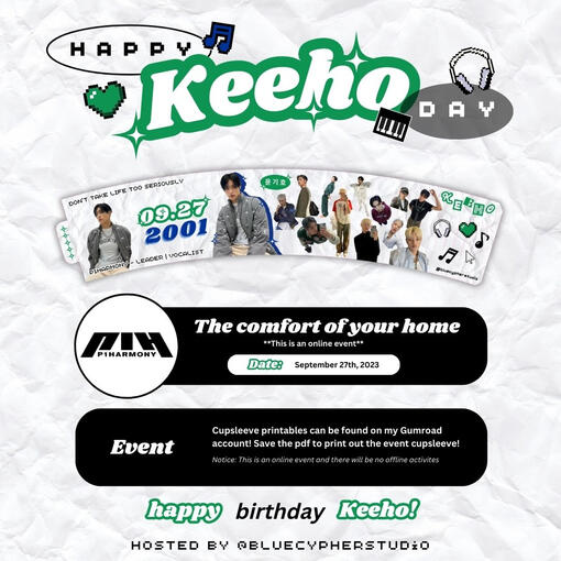 Hopefully, many of you could access the digital files for the Keeho online cupsleeve event! I may or may not be doing one for Jimin... although we'll see since I am in the midst of exams and many things outside the shop.If you didn't get the chance to access the cupsleeves in September for Keeho's birthday they are still up and can be found on my Gumroad page. If you need help accessing these and downloading them feel free to send me a message and I will try to help you asap!Thank you, and stay AWESOME!